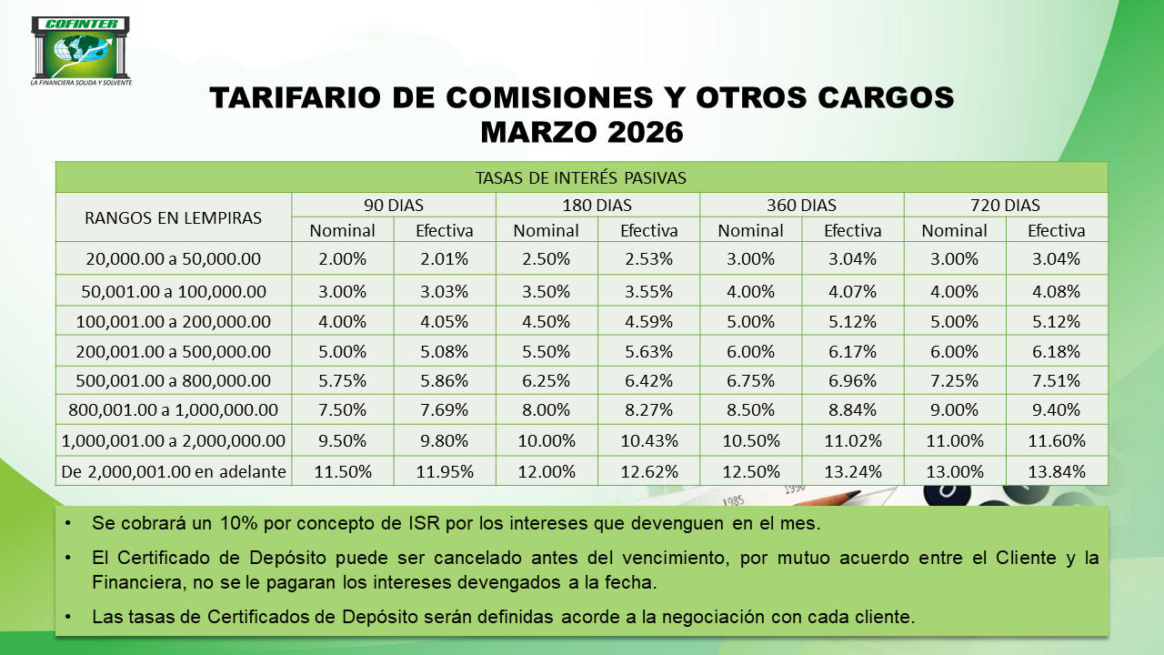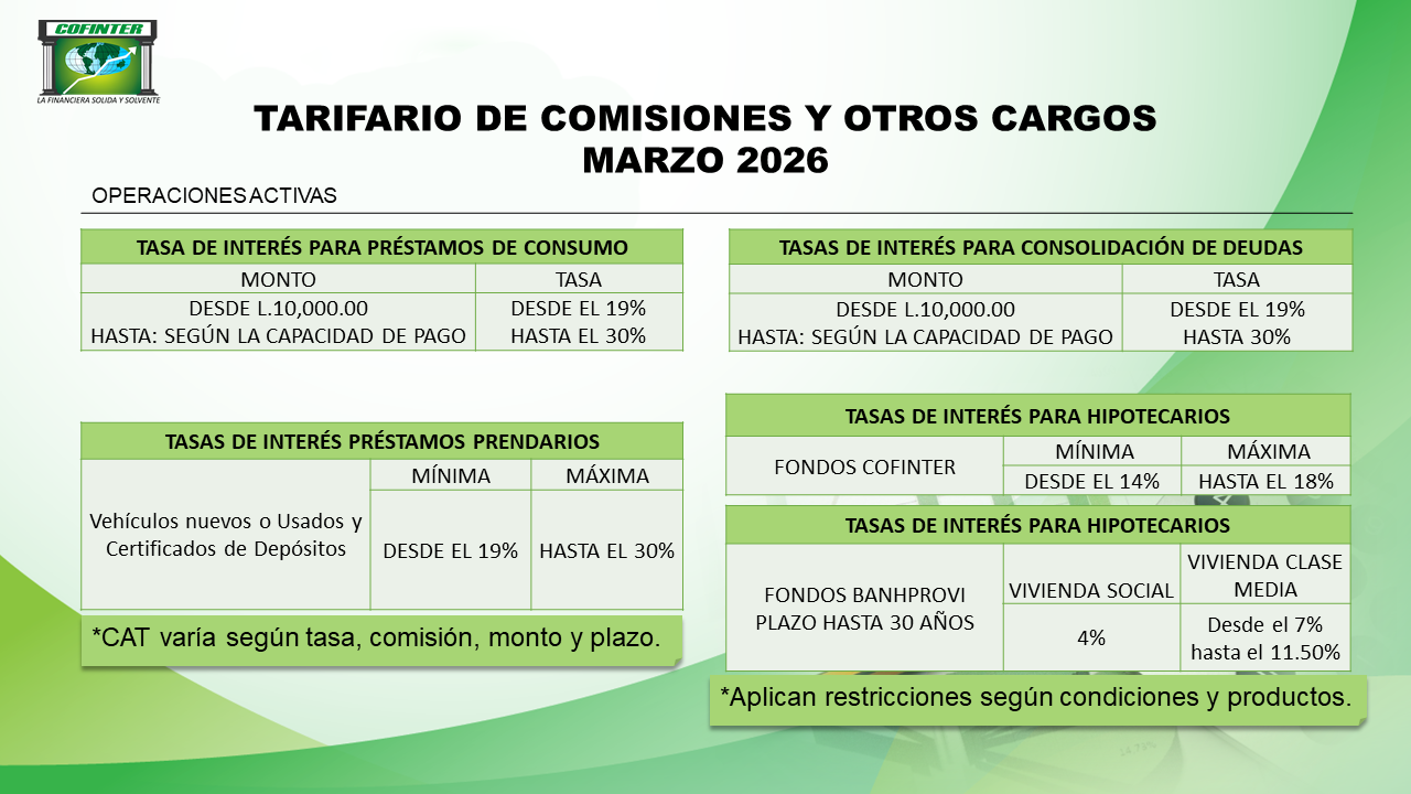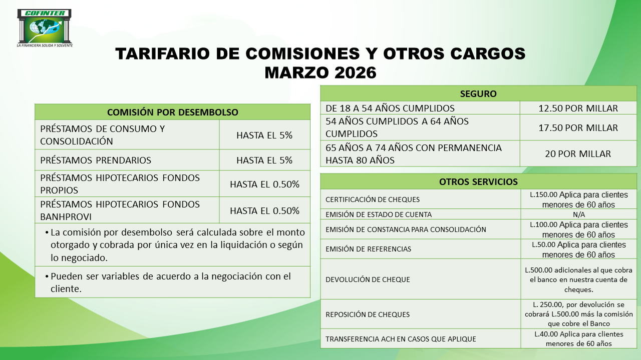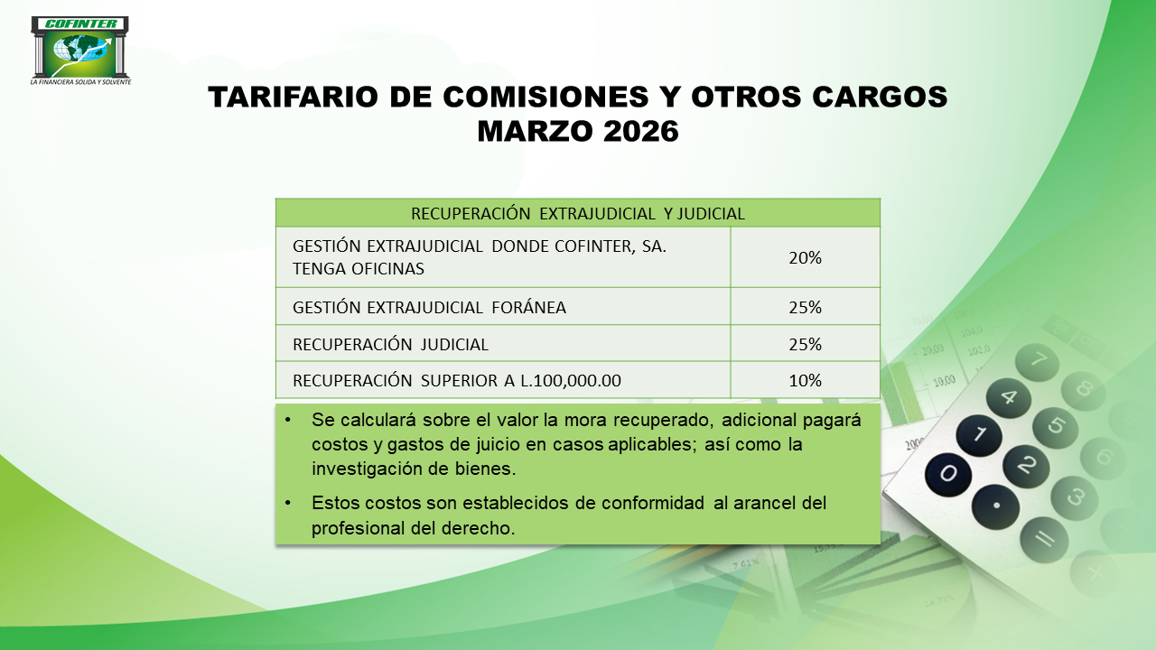 De haber necesidad de realizar cobro, a través de los apoderados legales, en virtud de mora o incumplimiento por parte del prestatario, se incurrirá en un cobro hasta de un 20% por concepto de honorarios profesionales por gestión extrajudicial dentro las ciudades donde COFINTER S.A. tenga oficinas, el que se calculara sobre el valor en mora recuperado; por recuperación foránea los honorarios profesionales a cobrar serán de y un 25% el que se calculara sobre el valor en mora recuperado, en caso de recuperación judicial los honorarios profesionales será de un 25% calculado sobre el valor total de la demanda.